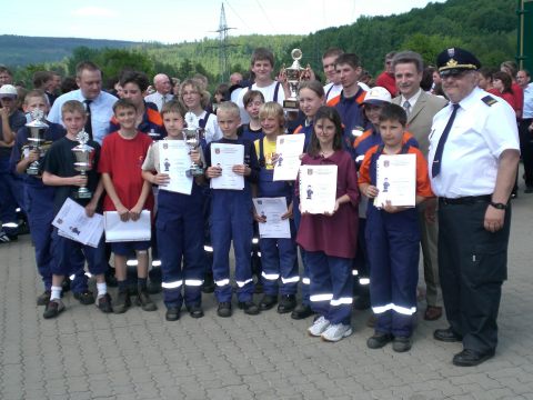 Das die beiden Feuerwehren aus Kassel und Wirtheim schon seit Jahren eng zusammen arbeiten ist bekannt. Nunmehr taten sich die beiden Jugendfeuerwehren zusammen um Ihr gemeinsames Jubiläum "40 Jahre Jugendfeuerwehr in Kassel und in Wirtheim" mit einem Wettkampfspektakel gebührend zu feiern. Im und um das Kasseler Feuerwehrhaus, sowie am Biebergemünder Bürgerhaus wurden verschiedene Wettkampfbahnen aufgebaut, Wertungsbüros und Räume für die theoretischen Prüfungen eingerichtet, aber auch für das leibliche Wohl der Teilnehmer sowie der zahlreichen Interessierten Besucher gesorgt. "Es finden hier schließlich drei verschiedene Wettbewerbe statt mit rund 20 Mannschaften und über 200 Teilnehmern!" so Jugendwart Konrad Becker aus Kassel, einer der Hauptorganisatoren. Ein Spektakel das man schon von der Hauptstraße aus bestaunen konnte zwischen den beiden Ortsteilen. Nach der offiziellen Begrüßung durch den Unterverbandsvorsitzenden Uwe Döring, dem Unterverbandsjugendwart Markus Rothländer und Bürgermeister Thomas Dickert wurden die Wettbewerbe gestartet. Unter anderem der Jugendfeuerwehr-Unterverbandswettkampf Gelnhausen mit insgesamt 13 Mannschaften. Hier müssen die Jugendlichen bei zwei unterschiedlichen praktischen Übungen Ihr Können zeigen: Über verschiedene Hindernisse muss ein Löschangriff im ersten Teil natürlich fehlerfrei und in einer bestimmten Zeit aufgebaut werden. Beim zweiten Teil geht es dann um die Schnelligkeit: Eine Schlauchleitung ist so schnell wie möglich aufzubauen, mit Kübelspritzen eine gewisse Menge an Wasser in einen Behälter zu bekommen, sowie Knoten und Stiche anzulegen. Den ersten Platz belegten hier die Mannschaft aus Birstein-Fischborn, gefolgt von Höchst II und der Gruppe Rothenbergen. Die Gastgebende Mannschaft Kassel/Wirtheim kam auf den 5. Platz noch vor Bieber und der gemeinsamen Gruppe Rossbach/Breitenborn/Lanzingen. Als weiterer Wettkampf richteten die Verantwortlichen aus Kassel/Wirtheim die praktische Abnahme zur Jugendflamme Stufe 2 aus: Hierbei nahmen 22 Jugendliche teil und mussten bei verschiedenen Stationen Ihr Können den Wertungsrichtern zeigen. Dazu gehört das absichern einer Unfallstelle, einen Lichtmast aufstellen und eine Saugleitung aufbauen. "Anschließend geht es zur Fahrzeugkunde über wo die Jugendlichen die dort verlasteten Gerätschaften benennen und Ihren Zweck erklären müssen" so der Wirtheimer Jugendwart Thomas Kling. Der dritte Wettkampf war dann für die Erwachsenen gedacht. Beim Leistungserwerb des Unterverbandes Gelnhausen traten insgesamt 7 Mannschaften aus dem Altkreis Gelnhausen an. Auch die Erwachsenen müssen bei einer Übung möglichst fehlerfrei einen Parkcour mit diversen Hindernissen wie Wassergraben, Hürde, Leiterwand und Laufbrett überqueren. Zudem steht bei den Erwachsenen dann auch noch ein Fragebogen aus dem Bereich Feuerwehrtechnik auf dem Programm der in die Gesamtbewertung mit einfließt. Den Wanderpokal gewann hierbei - wie auch bei den Jugendlichen, die Mannschaft aus Birstein-Fischborn, gefolgt von der Gruppe aus Hettersroth. "Wir sind mit dem Ablauf sehr zufrieden gewesen, es hat alles reibungslos geklappt und die Menge an teilnehmenden Mannschaften und Besuchern hat uns gefreut," resümierte zum Abschluss Konrad Becker, ehe es gegen 14 Uhr zur Siegerehrung überging.